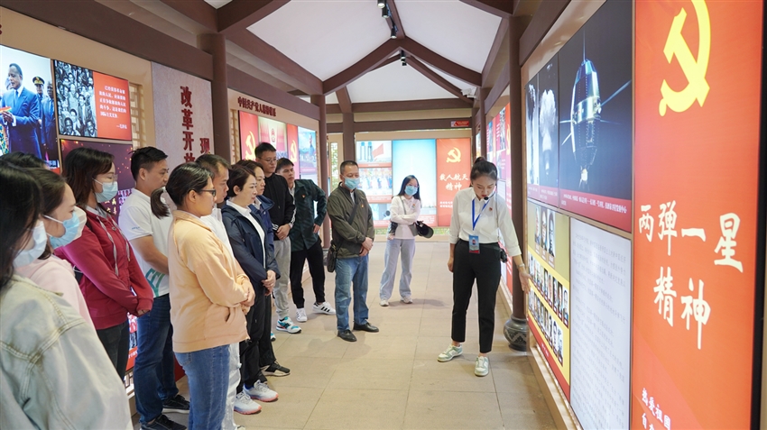 第一站,黨員干部們跟隨講解員依次參觀了中國共產(chǎn)黨人精神譜系主題園的“兩廳一廊一館”,講解員通過互動點播屏、全息投影系統(tǒng)、虛擬翻書系統(tǒng)等聲光高科技設(shè)備,引導(dǎo)黨員干部們對新民主主義革命時期、社會主義革命建設(shè)時期、改革開放和社會主義現(xiàn)代化建新時期以及中國特色社會主義新時代所形成的系列偉大精神進行了沉浸式學(xué)習(xí)。在講解員的介紹下,大家沿著百年黨史的時光長河溯流而上,仿佛回到歷史情境中,細細品讀著先輩們從千磨萬擊中錘煉而來的偉大精神,這些偉大的精神不斷叩擊著大家的心靈,讓人心潮澎湃、感慨萬千,從中汲取了不斷前進的力量。