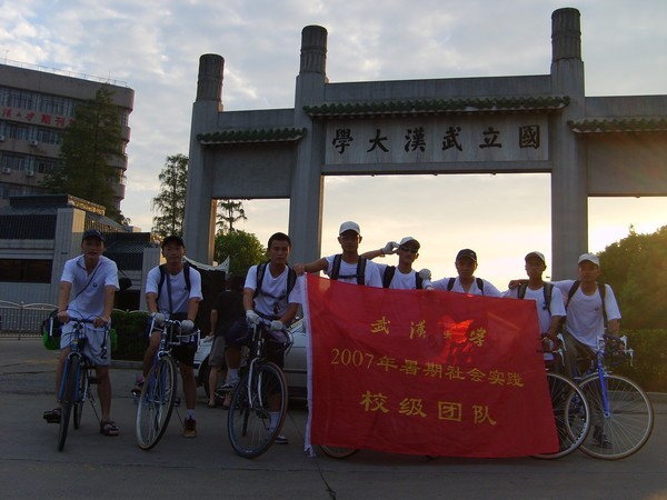 每次翻開校內(nèi)上那個(gè)名為《踩著單車去看海》的相冊(cè)時(shí),腦海總會(huì)立馬浮現(xiàn)出我記憶深處那幾張年輕而又有些稚氣的臉孔。東子、梁子、小權(quán)、凱子、小超。那一年我20歲,大二。當(dāng)我第一次聽到他們幾個(gè)要從武漢騎車去上海時(shí),首先覺得甚是不可思議,接著從心底佩服這幫家伙。但,那時(shí)候的我還未曾想過自己也會(huì)成為這個(gè)團(tuán)隊(duì)中的一員。