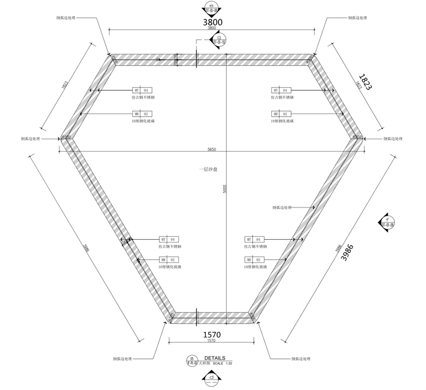 沙盤底座尺寸暫定如下圖所示,具體以采購文件發(fā)布時(shí)提供的施工圖為準(zhǔn):